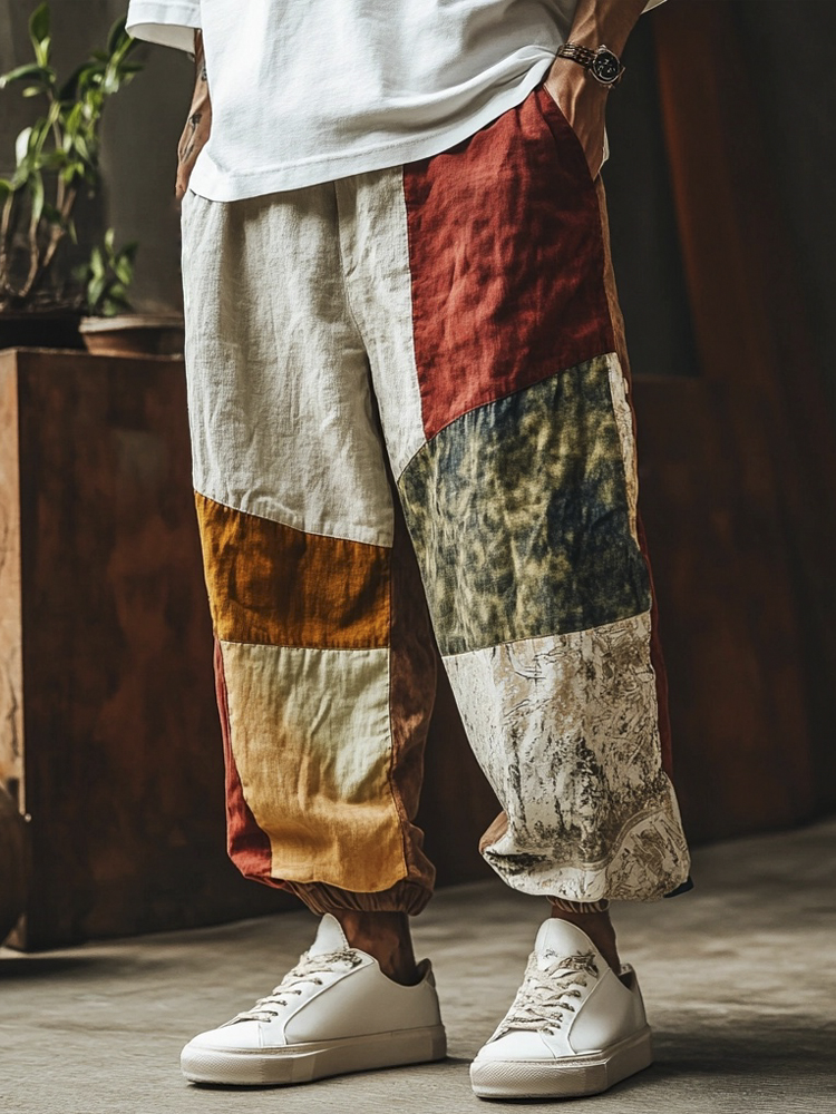 Boho Patchwork Fabric Art Men's Vintage Linen Casual Pant 9ce2