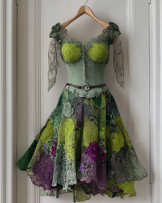 Elegant Green and Purple Lace Dress db07