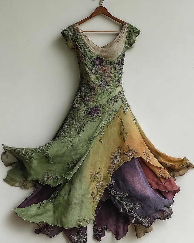 Elegant Green and Purple Lace Dress eca8