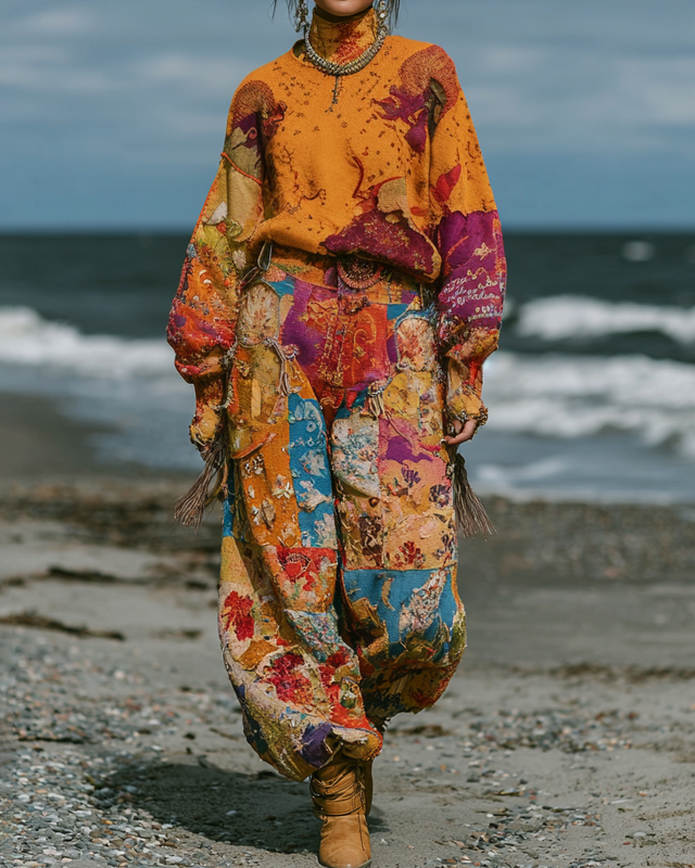 Elegant Seaside Color Block Top and Pants Two-Piece Set 9115