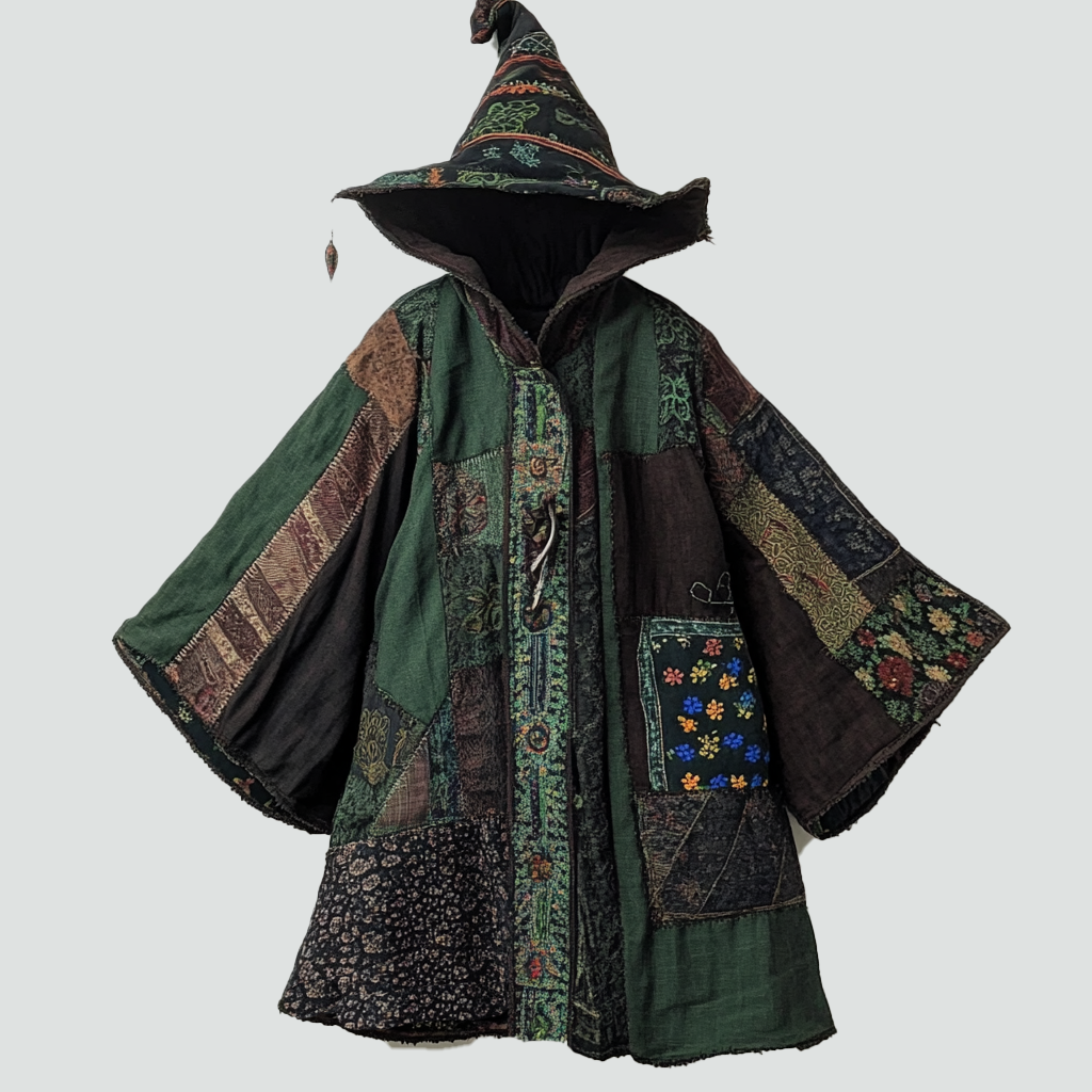 wizardEthnic print hooded disk-button robe 4d7a