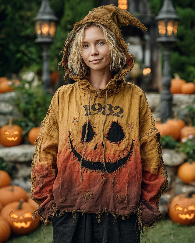 Halloween 1982 Themed Gradient Embroidered Hoodie Top 17b9