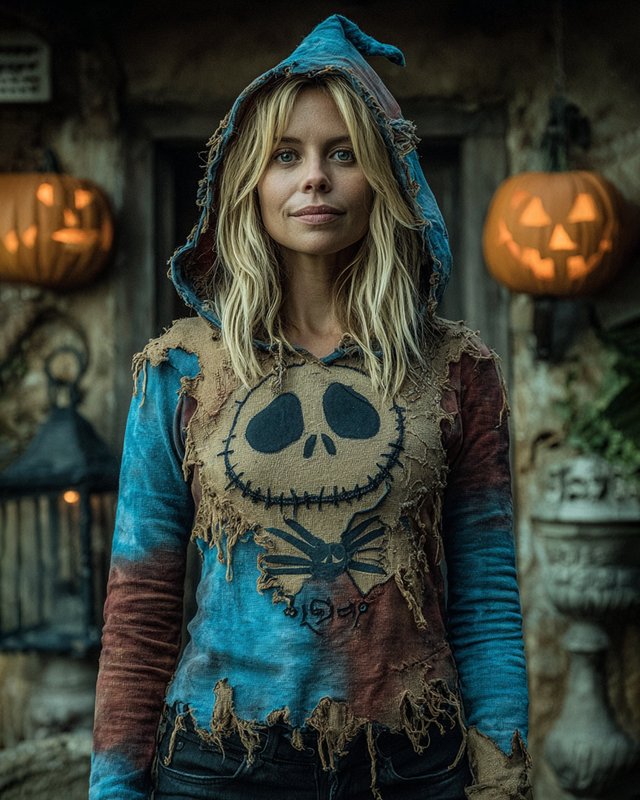 Halloween Themed Contrast Patchwork Embroidered Hooded T-shirt d4bb