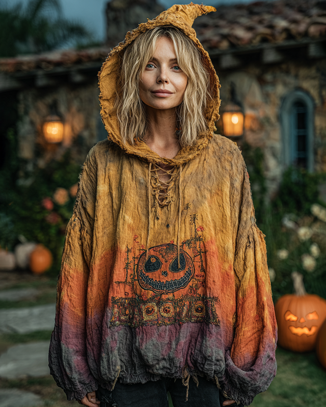 Halloween Themed Gradient Patchwork Hoodie Top 5b02