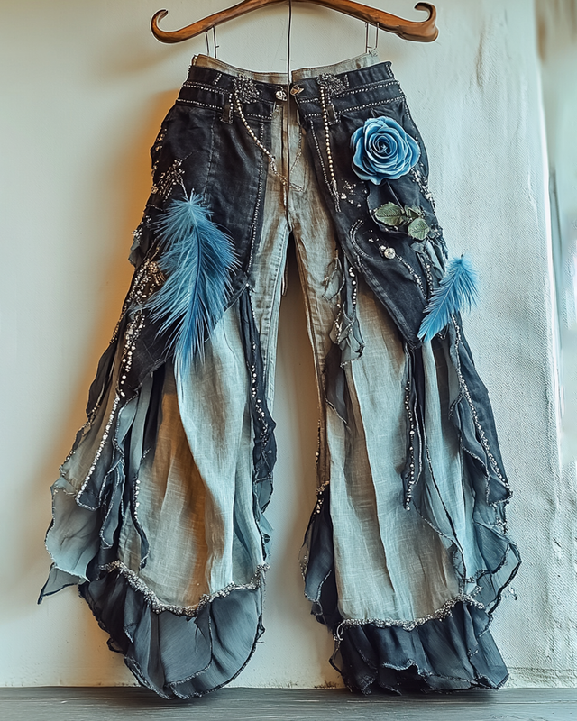 Halloween Themed Irregular Patchwork Linen Trousers bf15