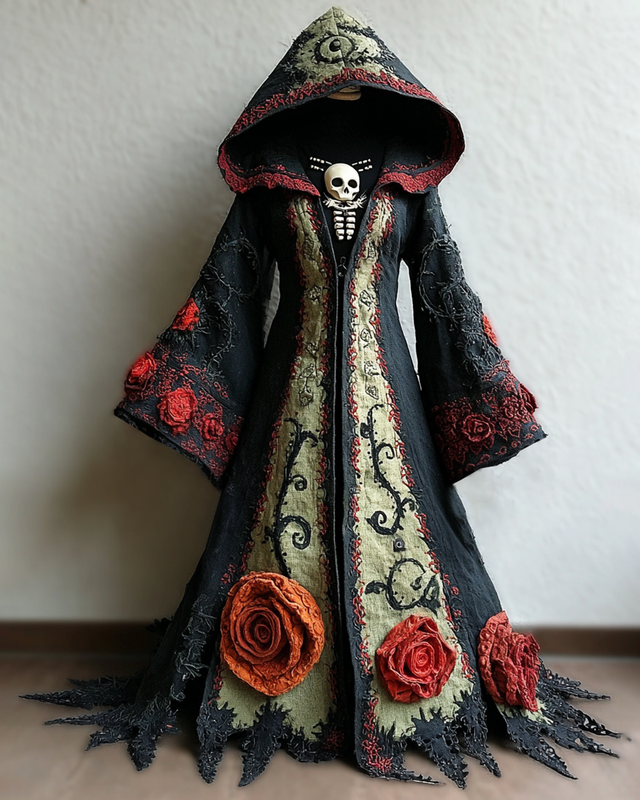 Halloween Themed Rose Crochet Contrast Hooded Cape e06b