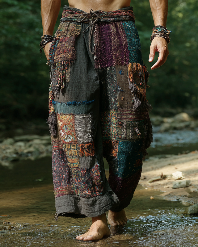 Men's casual irregular ethnic stitching linen pants 2a98