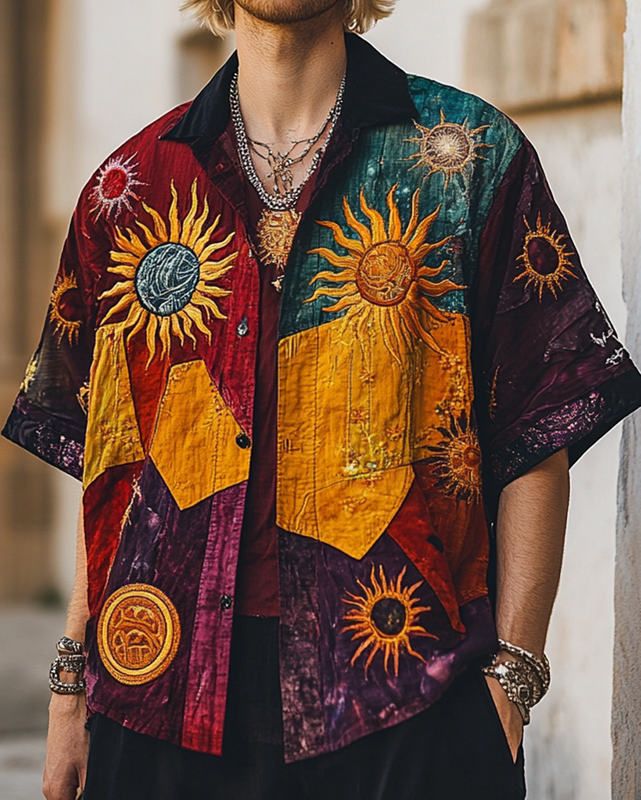 Men's star and moon embroidered rainbow contrast Shirt 6395