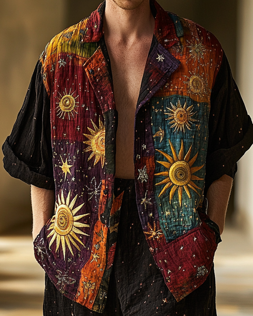 Men's star and moon embroidered rainbow contrast top 9741