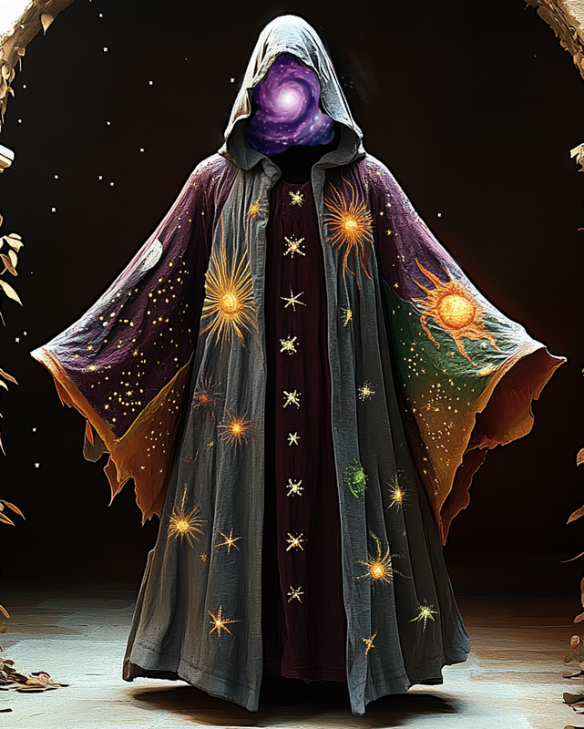 Sun, Stars, Moon 3D Embroidered Contrast Color Linen Shadowman Cape 0cd8