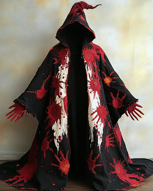 Bloody Handprint Embroidery Contrast Color Stitching Halloween Theme Cape 1a54