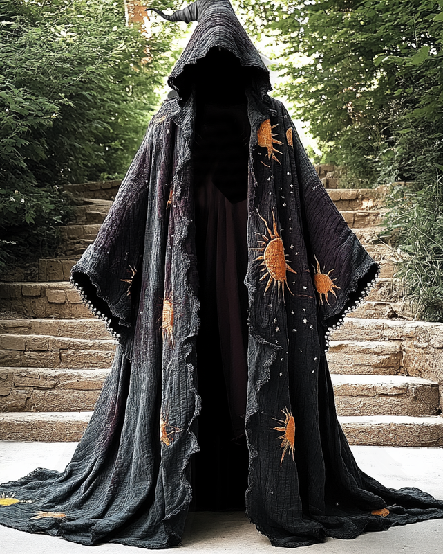 Linen cape with three-dimensional embroidery of stars and moon b467