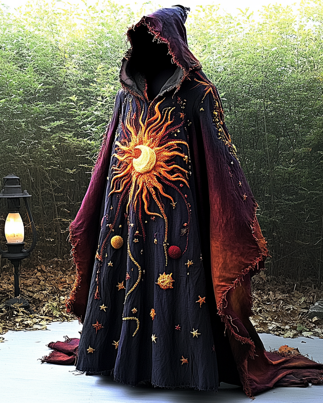 Sun, Stars, Moon 3D Embroidered Tie-Dye Linen Cape ddf5