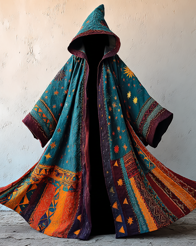 Star and moon embroidery stitching Pendleton theme print ethnic style cape 4342