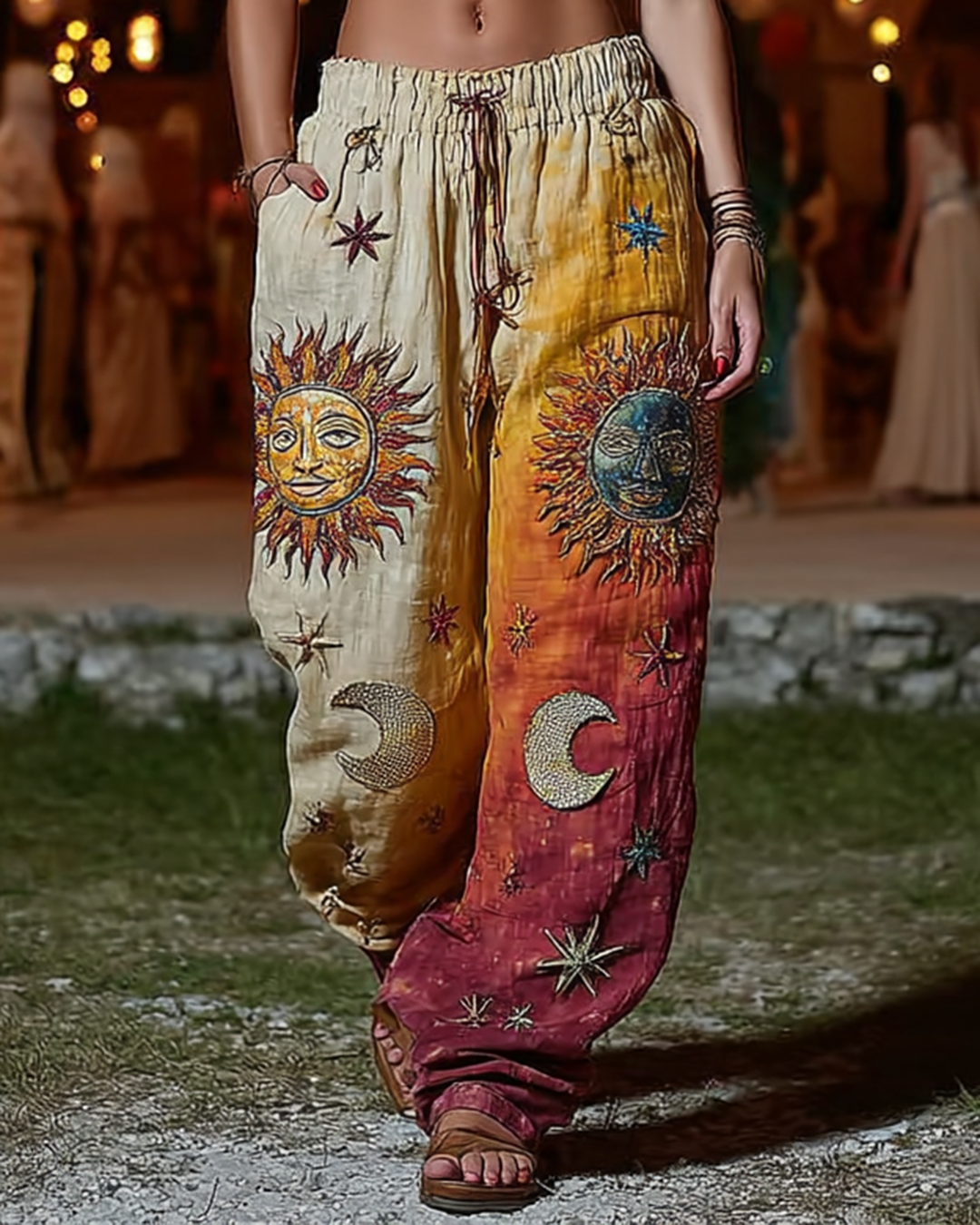 Star And Moon Themed Embroidery Gradient Trousers 452f