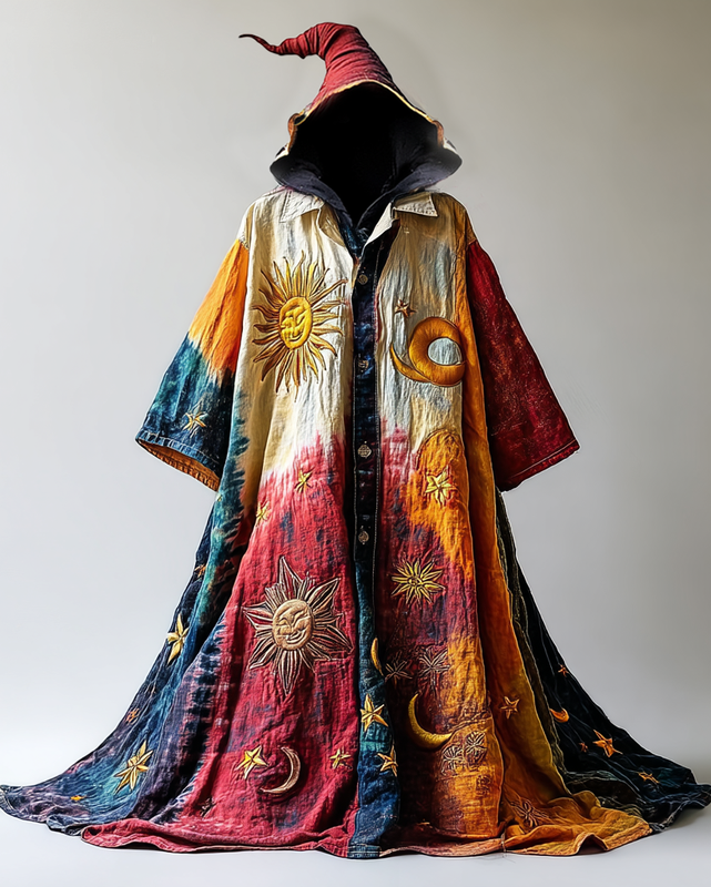 Star and Moon Embroidered Tie-Dye Cape 023d