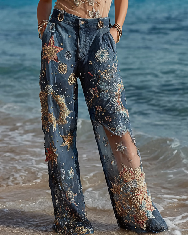 Summer Holiday Star and Moon Embroidered Lace Pants e1e2