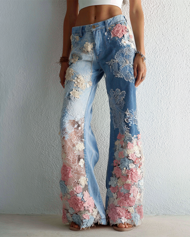 Summer Vacation Floral Embroidered Denim Pants 53c6