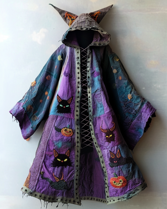 Women's Halloween Cat Print Cape Coat 2779