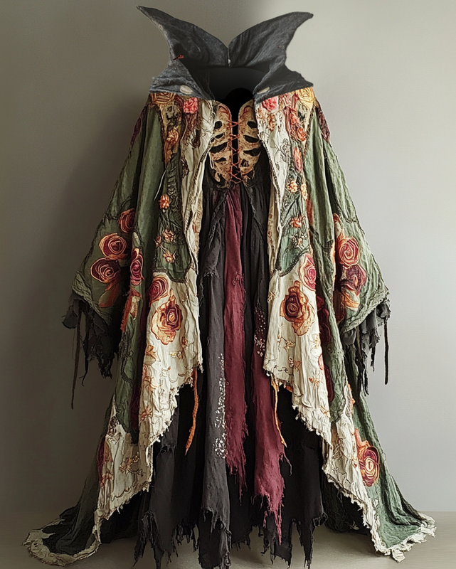 Floral 3D embroidered contrasting color lace 3D cape coat 596c