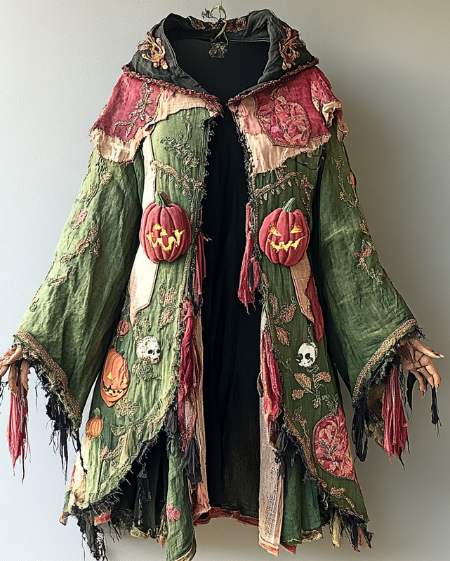 Floral and pumpkin head Halloween themed 3D embroidered cape coat 6dd1