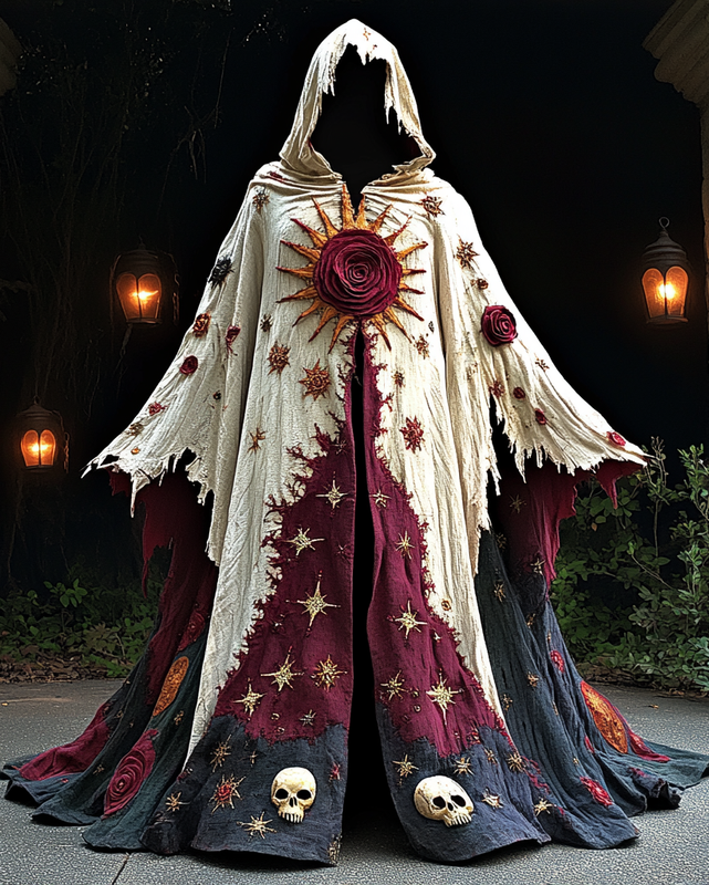 Rose and skull 3D embroidered tie-dye blood cape fe2b