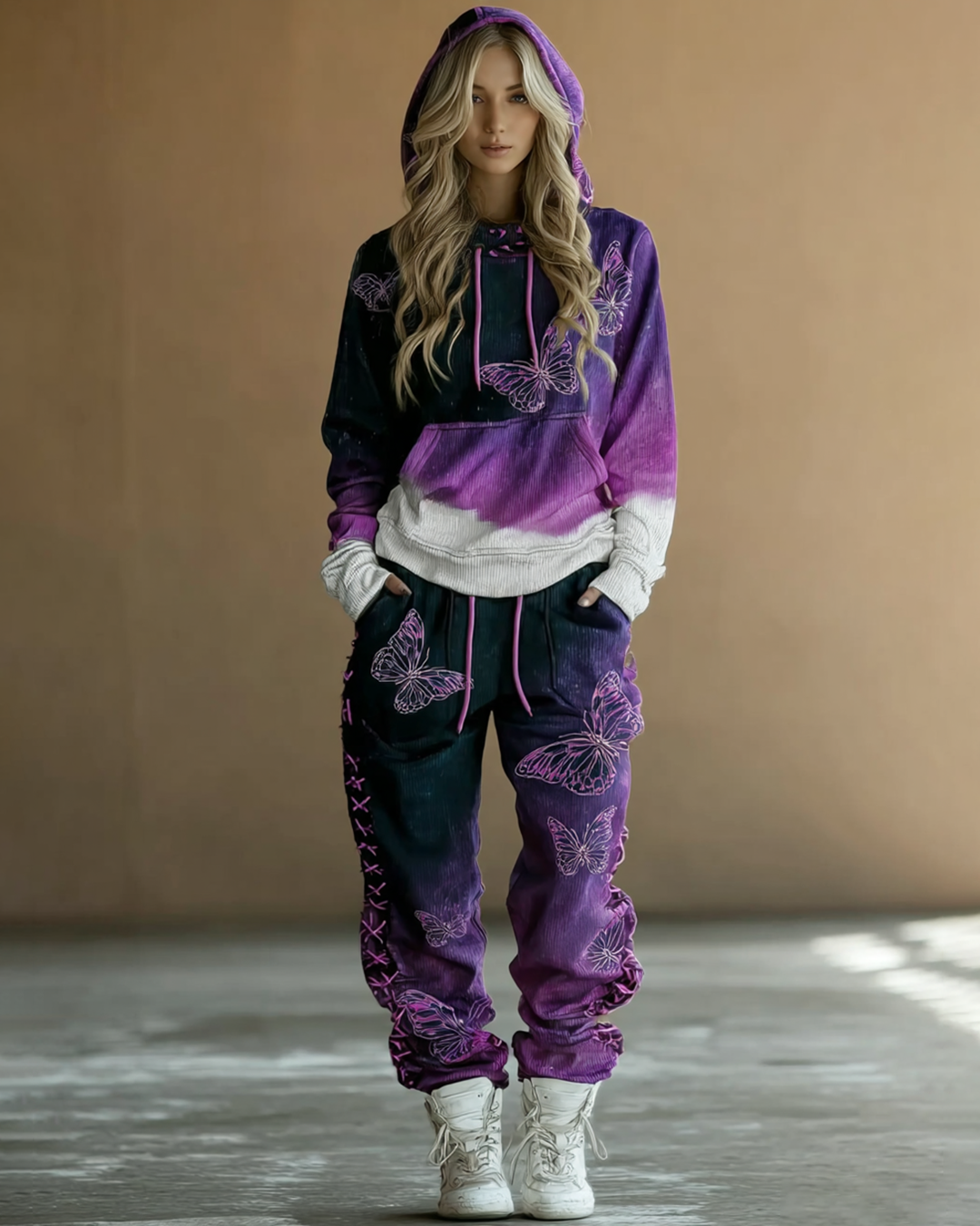 Women's Spring Viking Embroidered Hooded Sweatshirt and Pants Two-Piece Set 3774