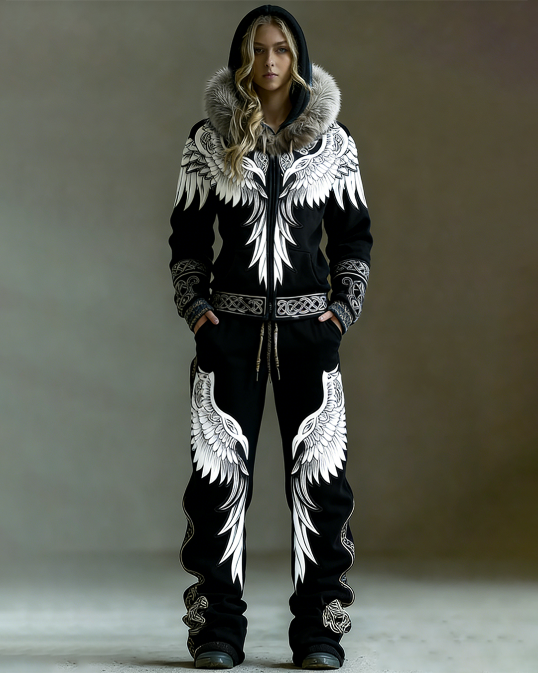 Women's Winter Warmth Faux Fur Hoodie and Pants Two-Piece Set 9821